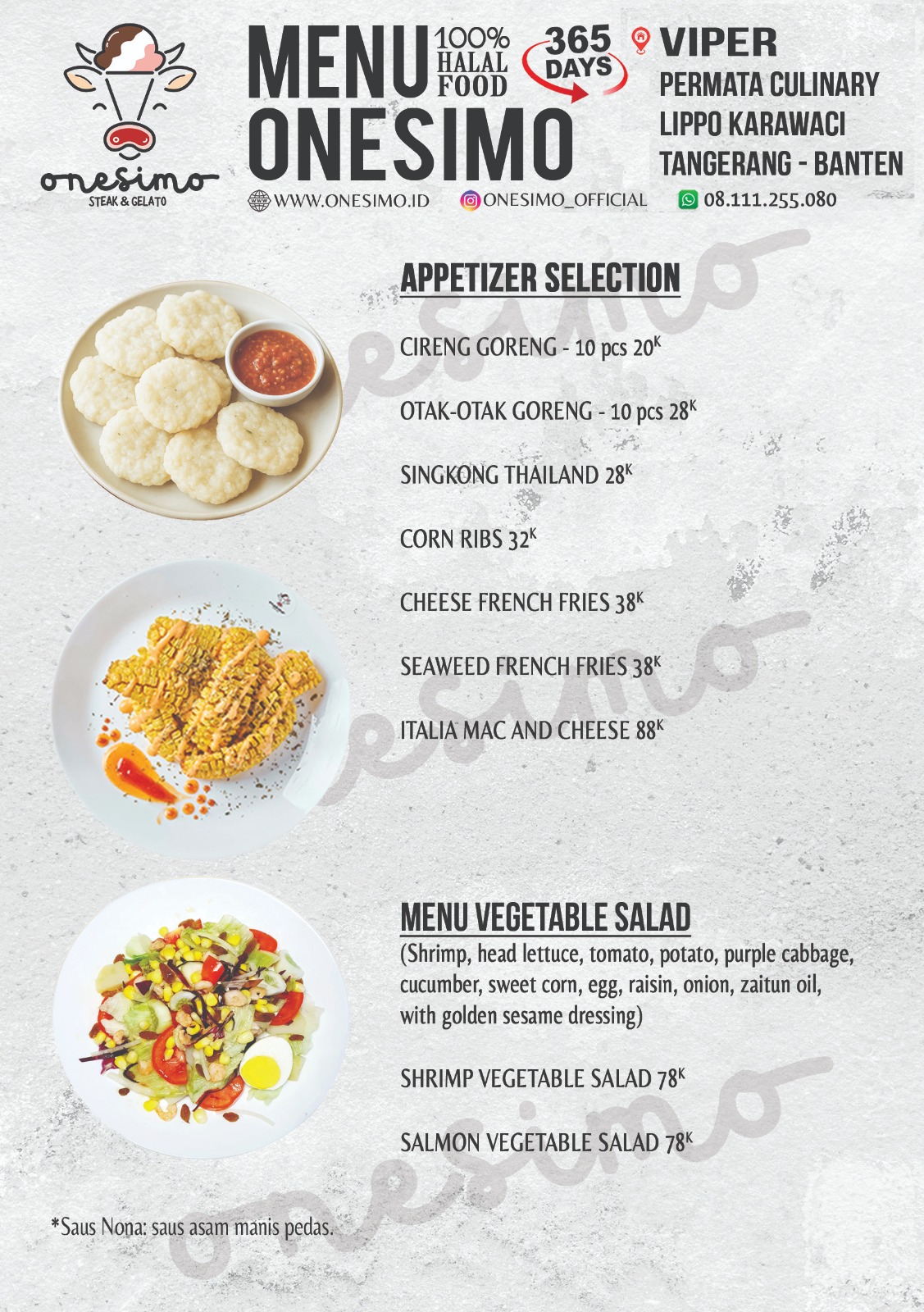 Pilih kombinasi pasta dan saus favorit Anda, lalu nikmati pengalaman pasta dengan gaya khas Onesimo yang authentic, creamy, dan penuh cita rasa.