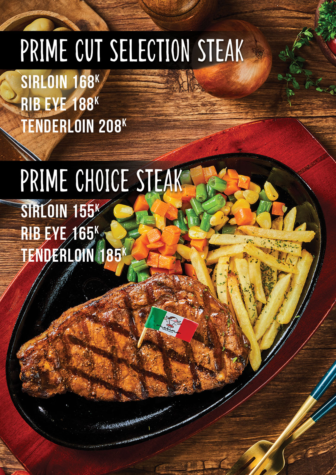 Disajikan hangat dengan aroma menggoda, Big Boy Steak siap jadi bintang meja makan Anda – cocok untuk sharing bersama atau tantangan makan solo yang berkesan.